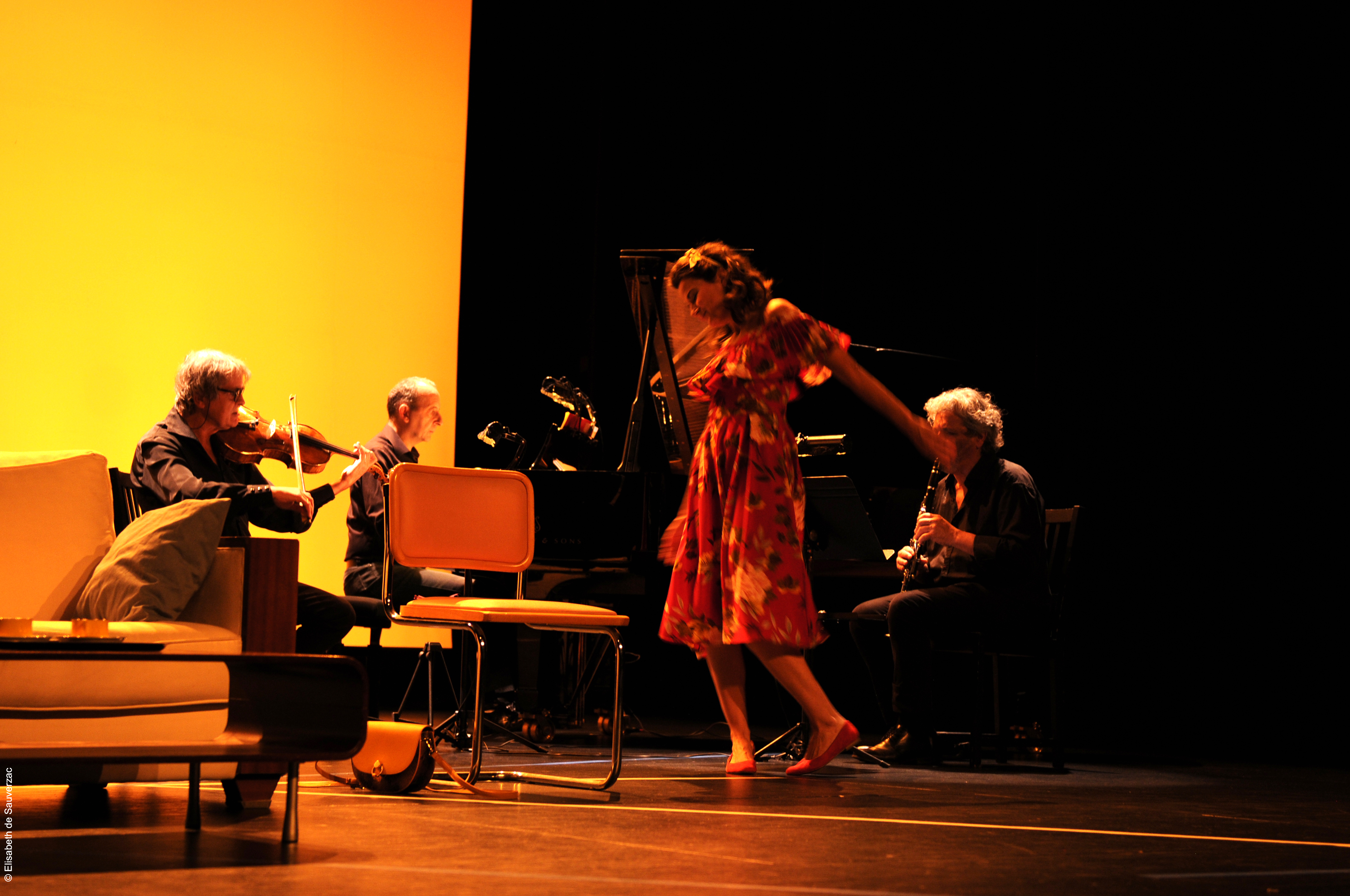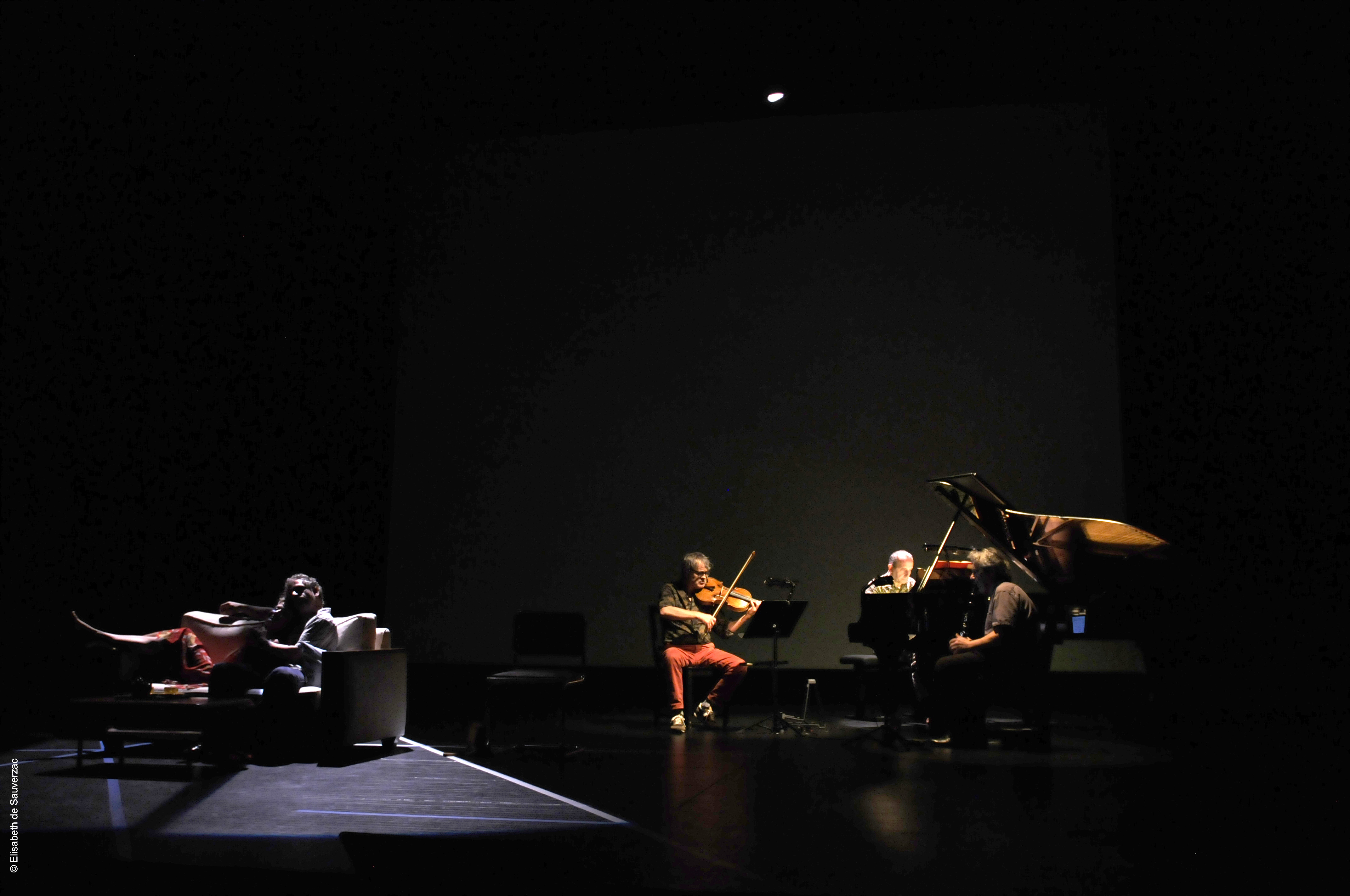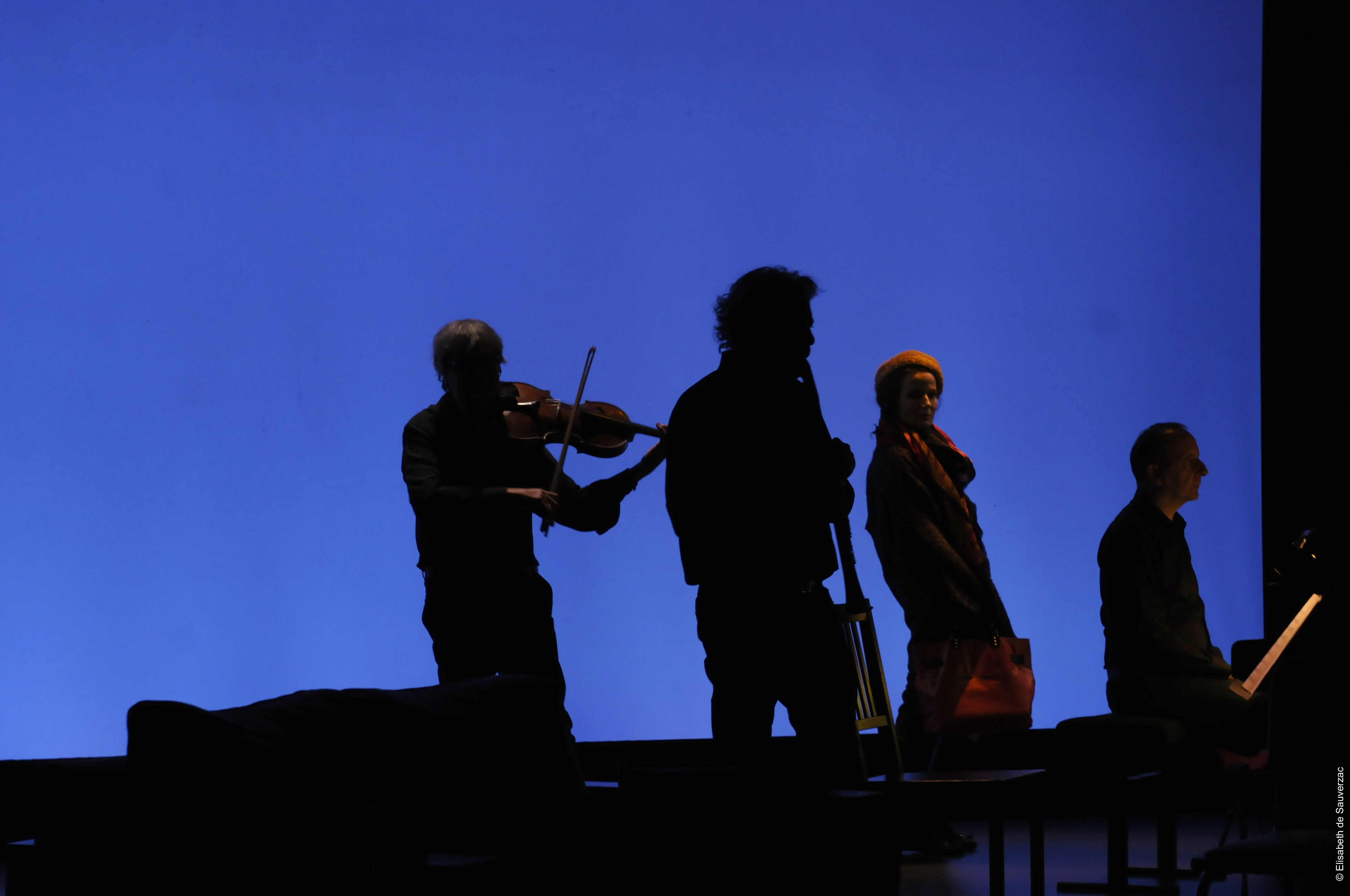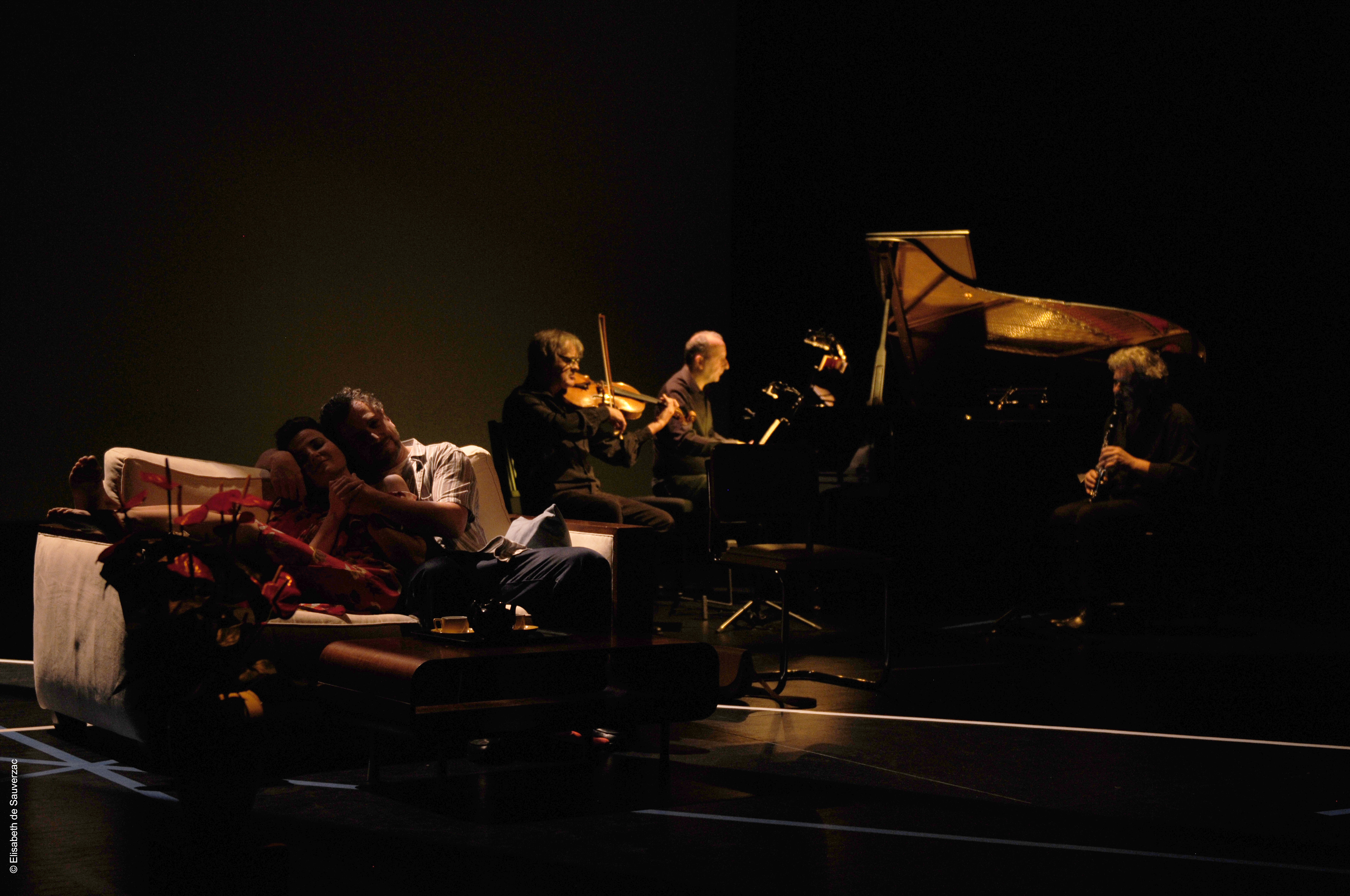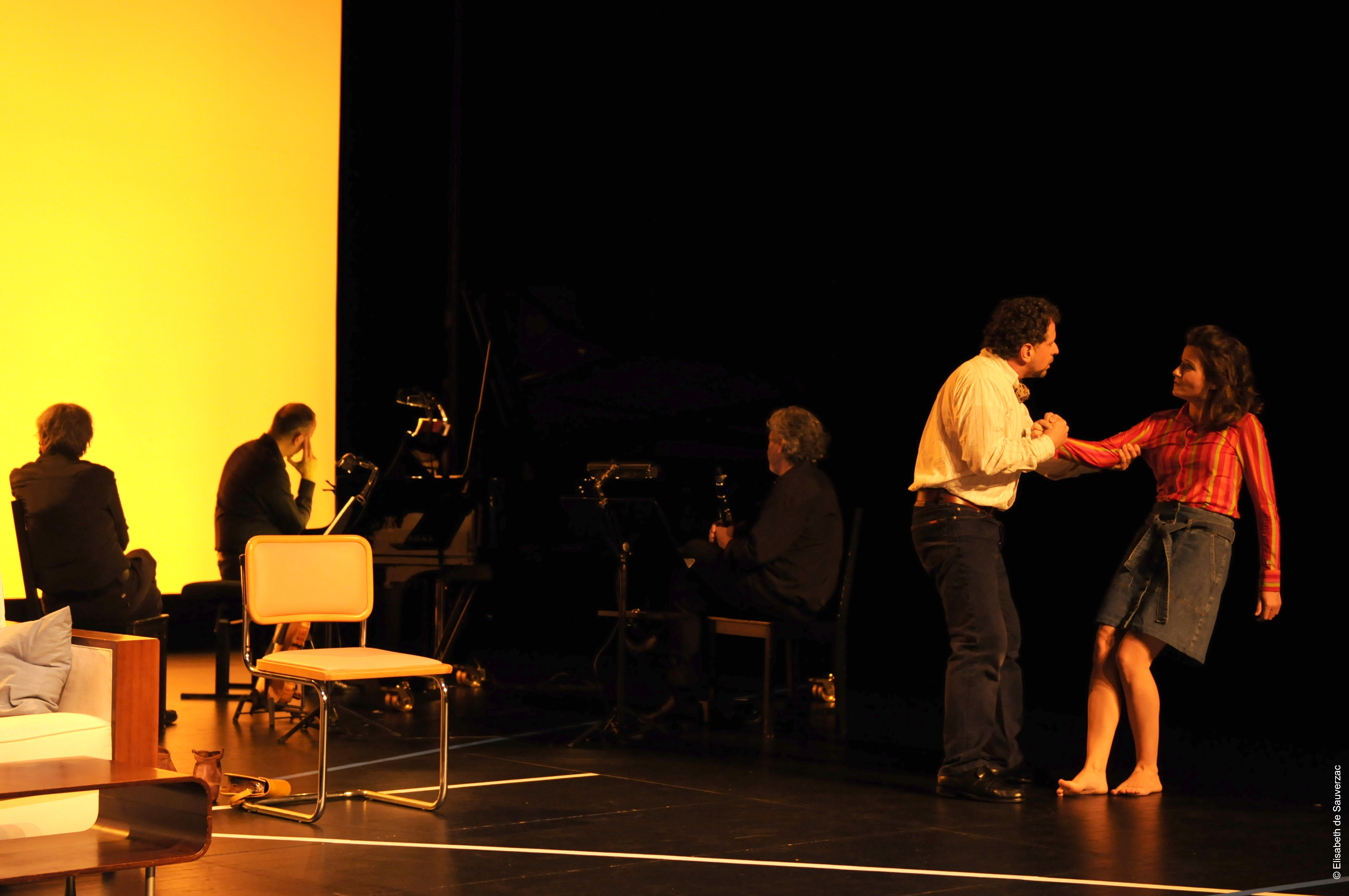 Comédiens Ugo Broussot, Eléonore Dupraz Musiciens clarinette Éric Lamberger, piano Michel Maurer, alto Alain Trésallet Costumes Elisabeth de Sauverzac Lumière Thierry d’Oliveira Reis Régie générale Erwan Le Métayer