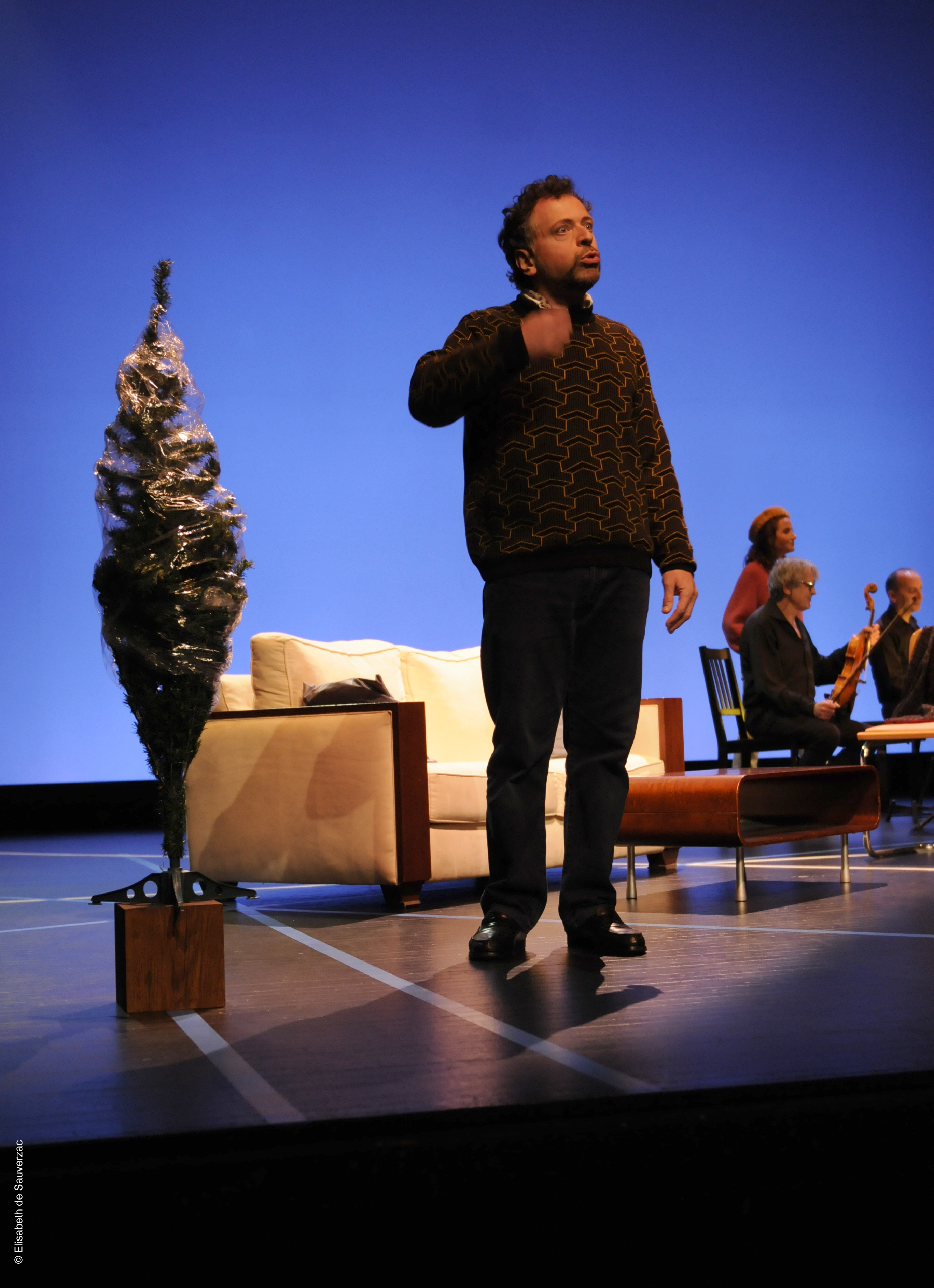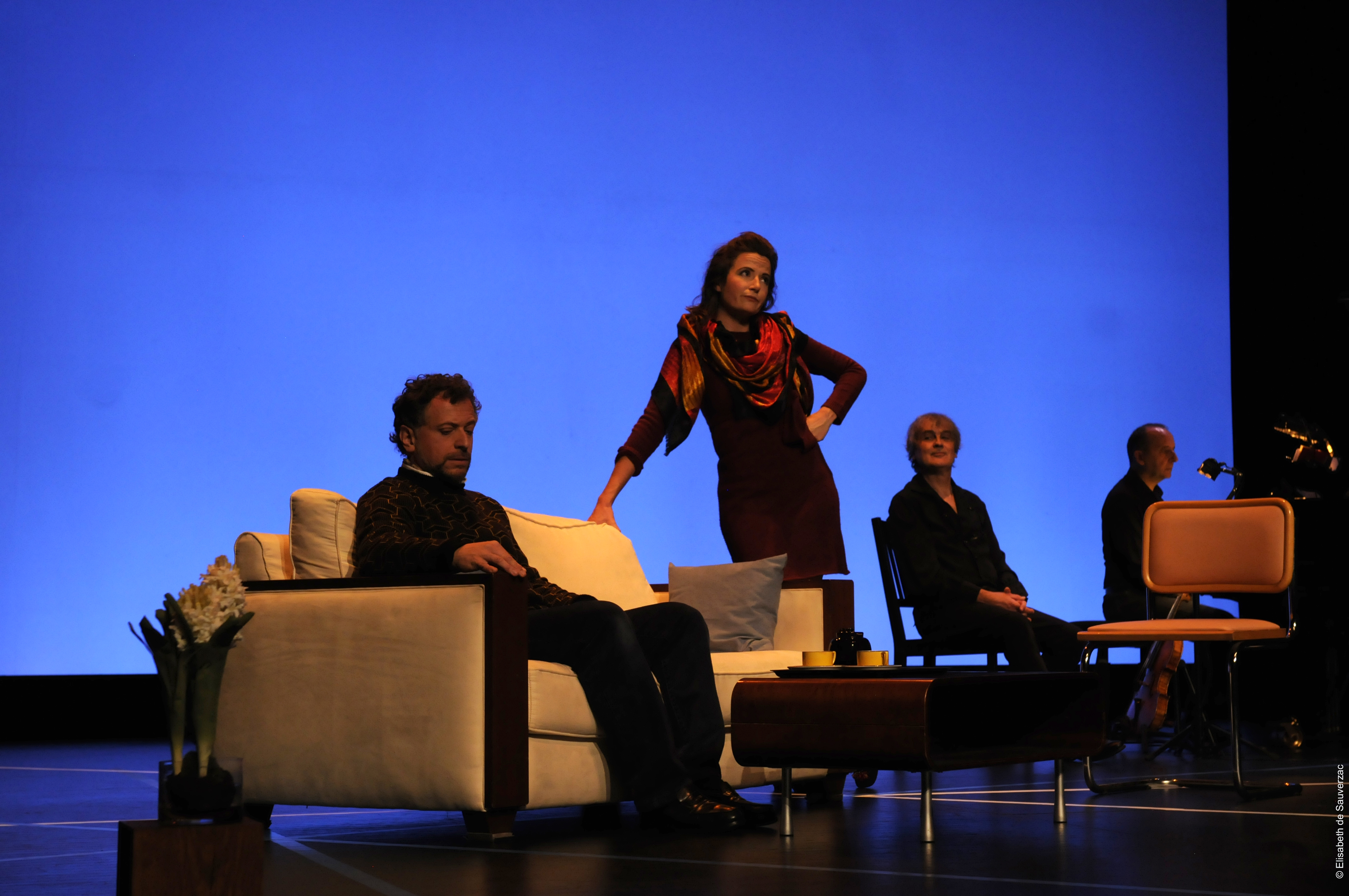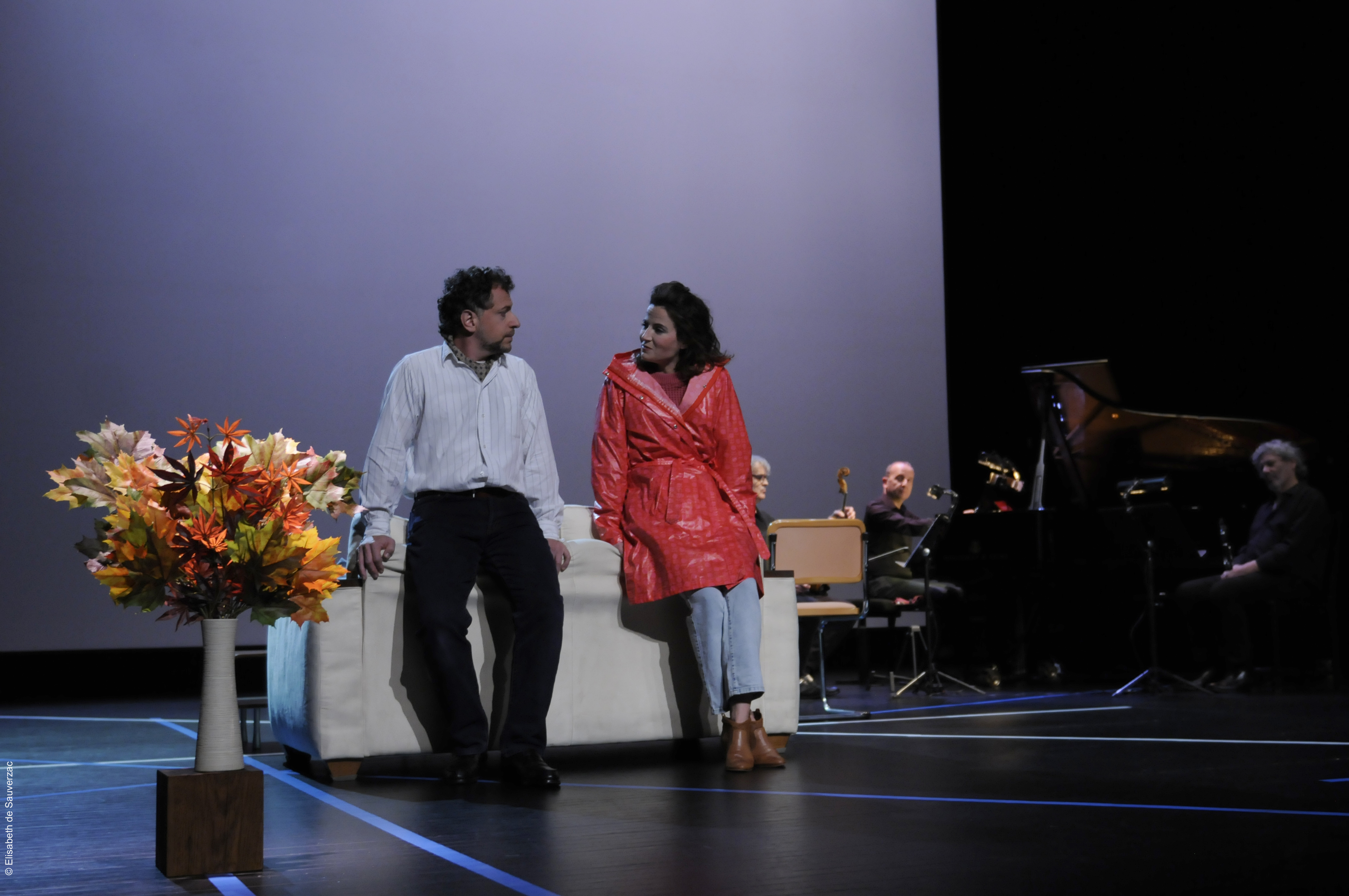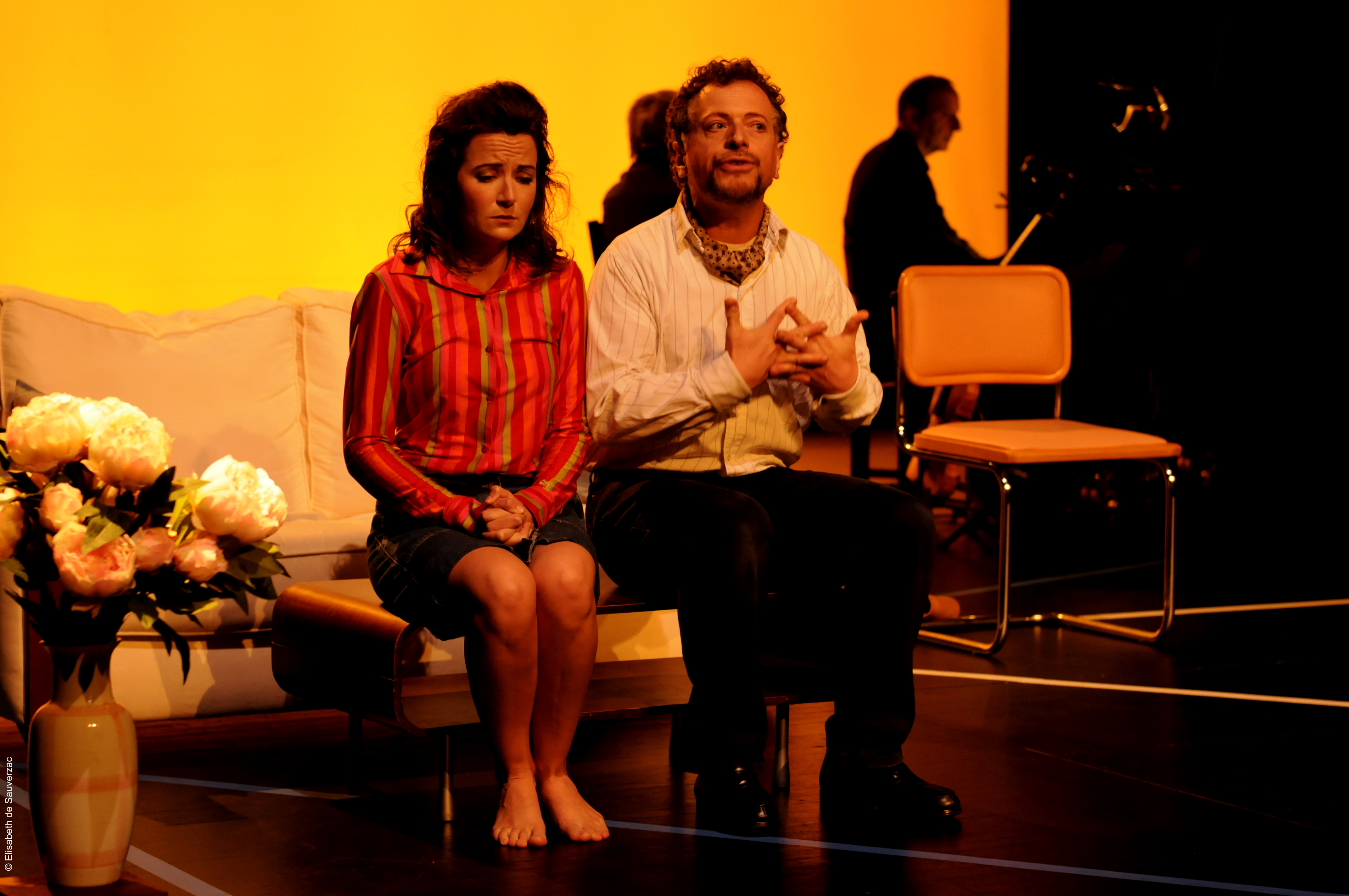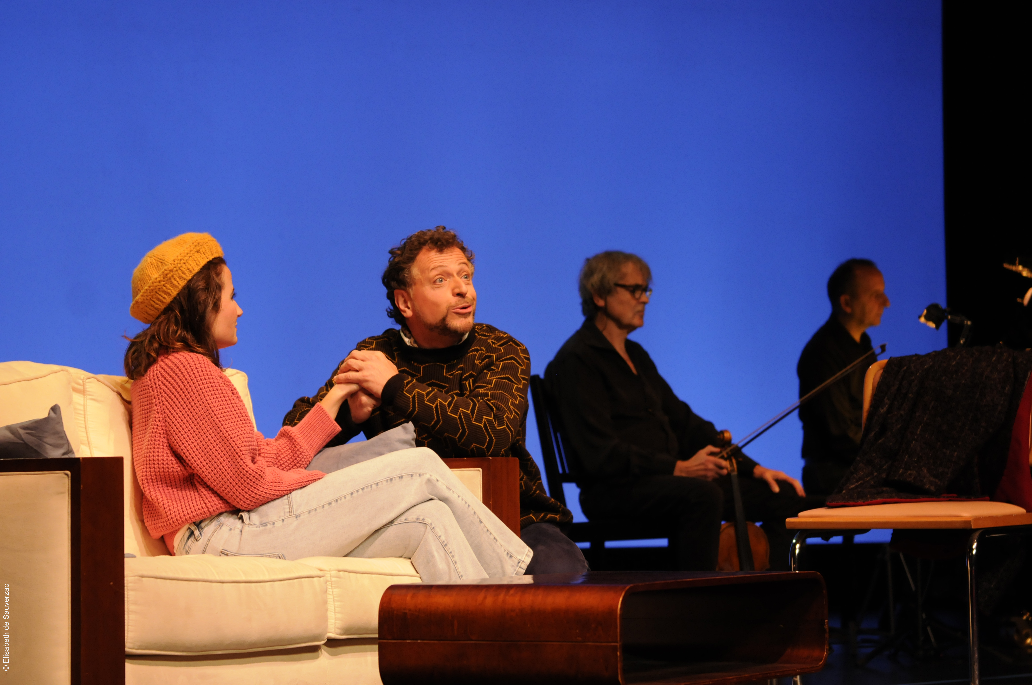 Comédiens Ugo Broussot, Eléonore Dupraz Musiciens clarinette Éric Lamberger, piano Michel Maurer, alto Alain Trésallet Costumes Elisabeth de Sauverzac Lumière Thierry d’Oliveira Reis Régie générale Erwan Le Métayer